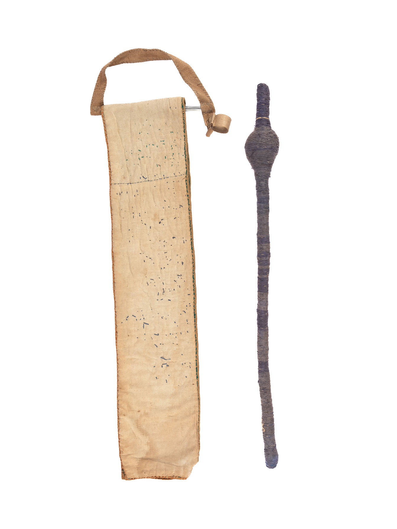 Material: material não identificado, metal, tecido, fio de algodão, tinta, linha